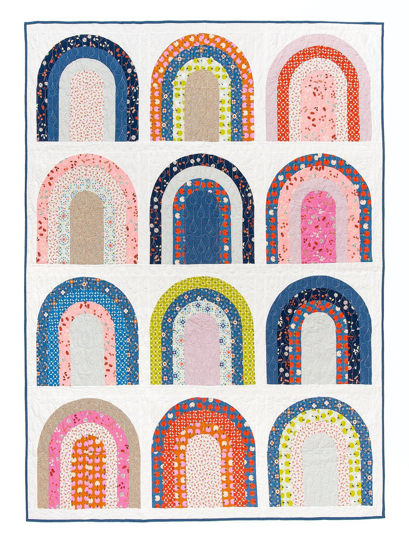 This Modern rainbow quilt pattern is a great way to learn to sew curves! You will get access to my video (links included in the pattern) that shows you how to sew curves. Make this pattern in 3 different sizes: Mini (one block), lap, or throw size. After seeing this design in my mind, I knew I wanted to conquer curves so I could create this. I actually learned to sew curves while making and designing this pattern. I wanted to give this quilt a name that shows the beauty and hope that comes with rainbows. Just like in life, no matter how bad the rain is, you can look for the rainbow and beauty afterward.