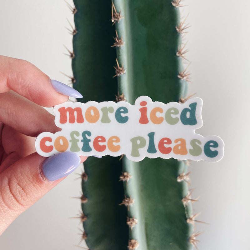 Who doesn't need more iced coffee? This fun little sticker is a great addition to laptops, phones, notebooks and more (plus it's waterproof!) All stickers are professionally printed on thick, durable vinyl. This makes them resistant to scratches and color fading, while also being dishwasher safe. Sticker measures 3" x 1" Designed with love in Nashville, Tennessee".