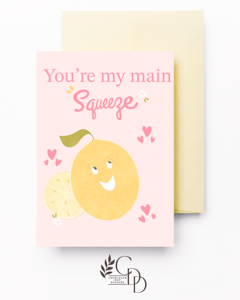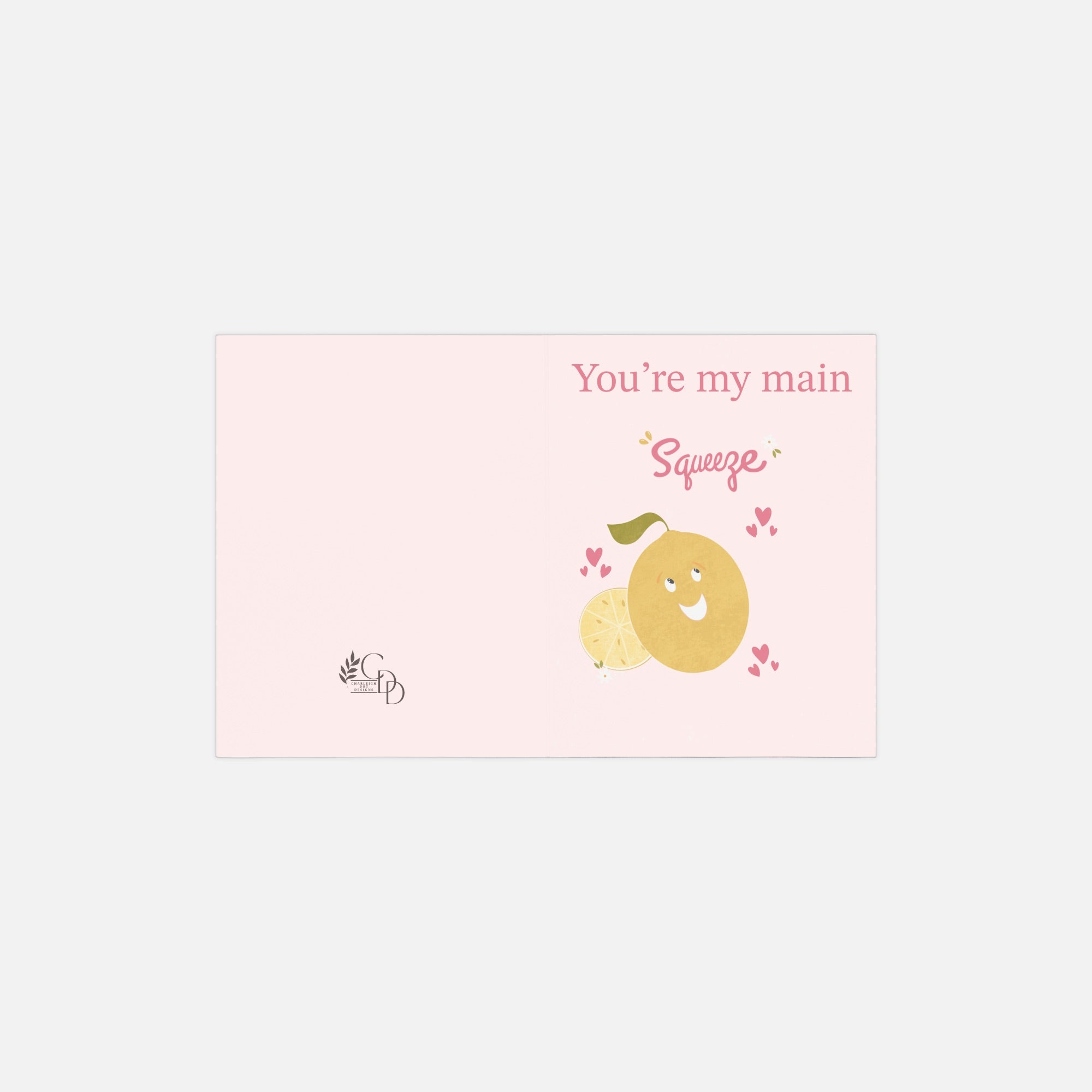 Looking to squeeze some extra love into your Valentine’s Day? Meet our "Main Squeeze" cards! Packed with 10 zesty cards, these aren't your run-of-the-mill love notes. With a cheerful lemon proclaiming, "You’re my main squeeze," they'll have your special someone chuckling before they even get to the heartfelt message inside. Choose between our Uncoated Mohawk or Uncoated Premium Superfine paper—because nothing says romance like smooth, card stock! Perfect for valentine-ing your partner, bestie, or that coworker who keeps stealing your stapler. This Valentine’s Day, don’t just share love, share a solid giggle with a card that’s more charming than a lemon in a tuxedo. Send some happy juice their way and watch the smiles pour in!