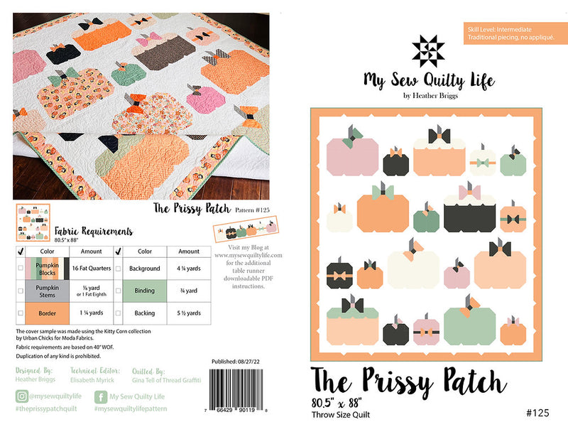 Are you ready to make the most adorable pumpkin quilt on the market? The Prissy Patch quilt is the perfect quilt to welcome you into the fall season. Have fun making these cute pumpkin quilt blocks with bows. Don’t let fall pass you by without making this quilt from My Sew Quilty Life.