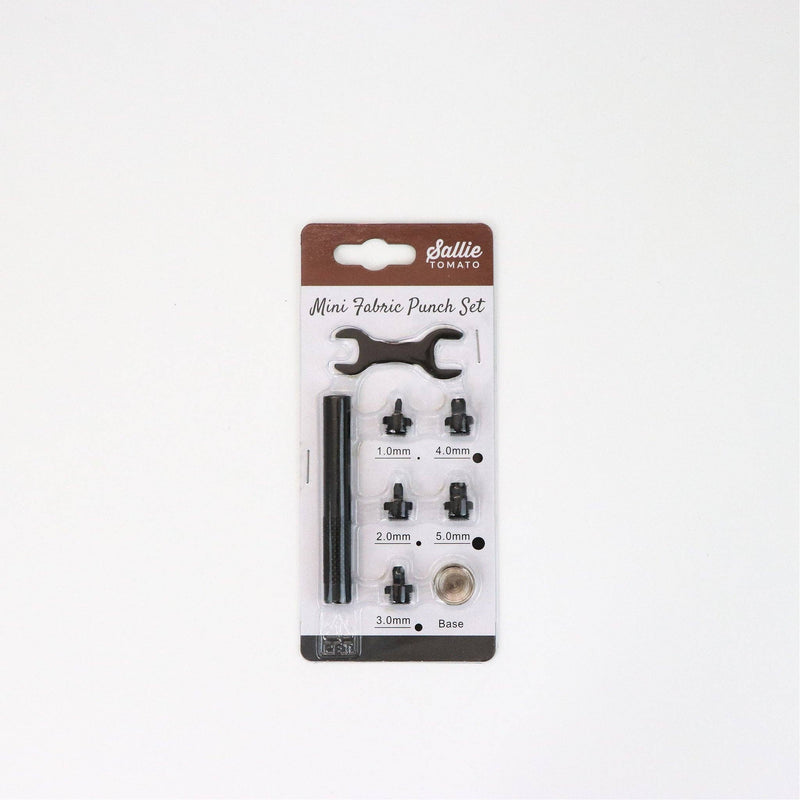 The Mini Fabric Punch Set has 5 different size adjustable points to punch out, as well as a base piece to ensure a clean punch through only the layer that is intended to be pierced.