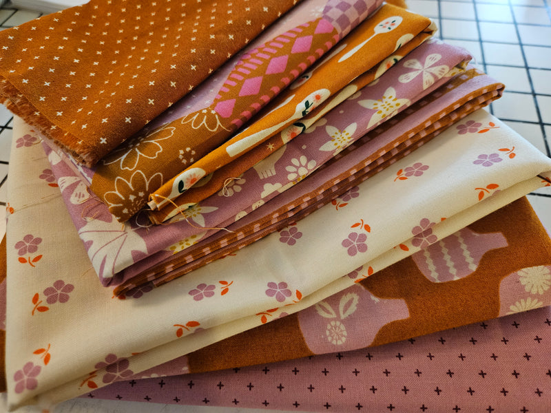 This Ruby Star Society bundle brings together a curated mix of colors, collections, and artists to form a harmonious set. Featuring primarily designs by Alexia Abegg, it offers a total of 4.7 yards of fabric. The largest piece measures 50" in width, while the smallest is 12"x14". This carefully selected assortment is perfect for creative projects needing unique and coordinated fabrics.