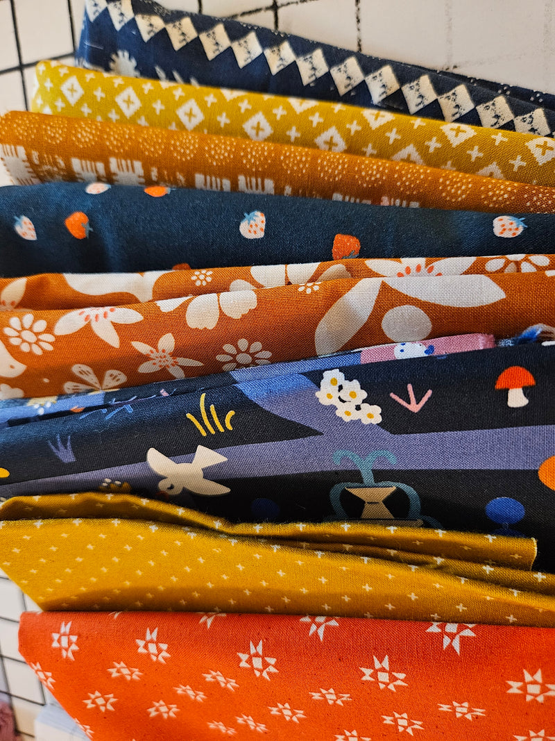 This Ruby Star Society bundle is a combination of colors, collections, and artists that creates a cohesive bundle. Mostly Alexia Abegg designs. This bundle is 4.6 yards in total. The largest most fabric measures 51", the smallest fabric measures 12.