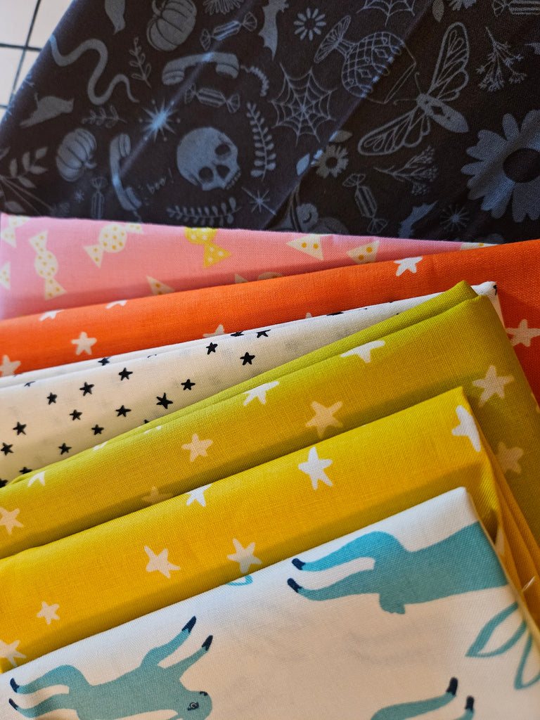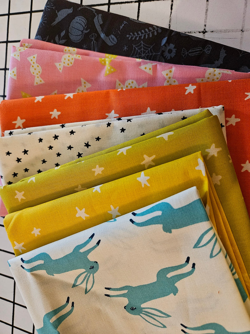 This Ruby Star Society bundle is a combination of colors, collections, and artists that creates a cohesive bundle. This bundle is 3.8 yards in total. The largest most fabric measures 35", the smallest fabric measures 7'. (WOF)