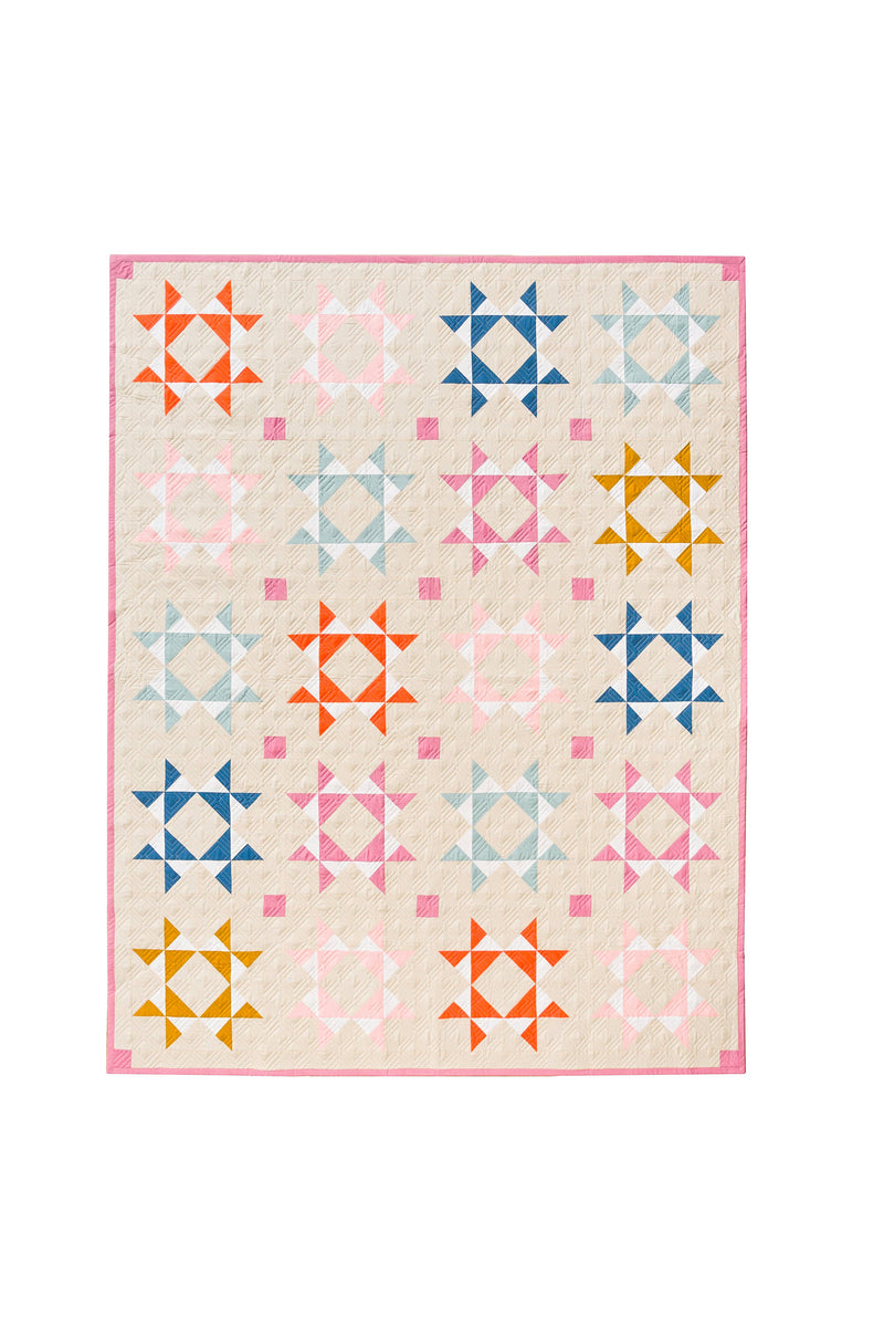 Sizes: Mini (12" x 12"), Small (44" x 58"), Medium (58" x 72") Fabric Requirements: See photos This quilt pattern takes the traditional Missouri Star Block and with a little fabric play, adds a modern twist. Note the background fabric is slightly darker than the block background fabrics. And using solid colors give this traditional quilt block a new look.